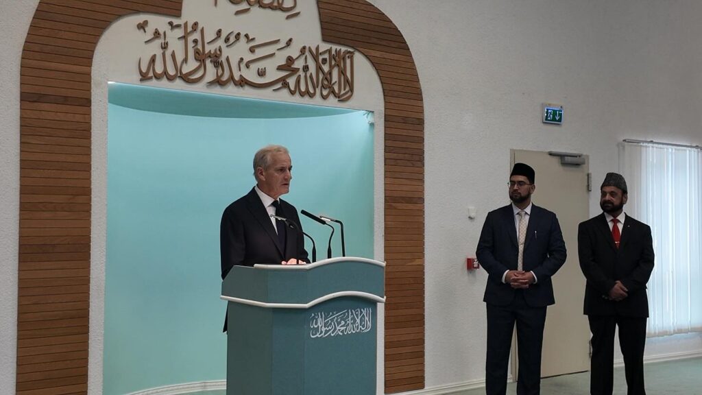 Fredag, den 5. september 2025 besøkte statsminister Jonas Gahr Støre og arbeidsminister Tonje Brenna Nordens største moske, Baitun Nasr moskeen på Furuset. Begge ble tatt i mot av den nasjonale lederen for trossamfunnnet i Norge, Zahoor Ahmad Chaudry, og hovedimamen Musawer Ahmed Shahid.